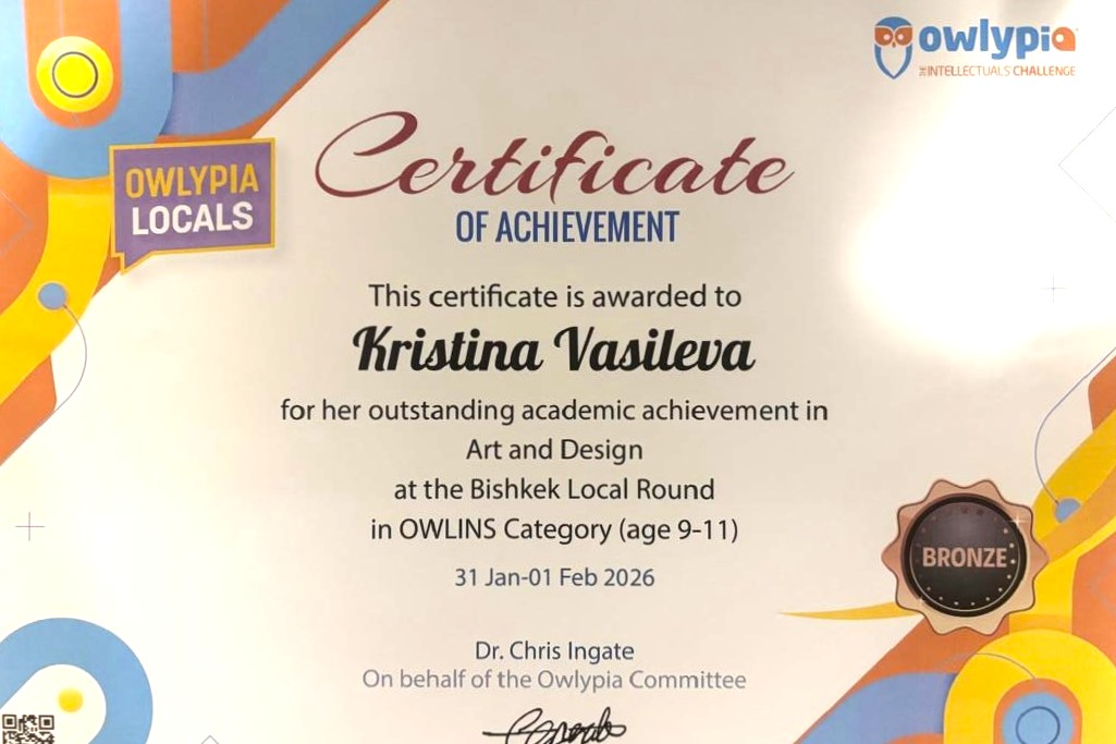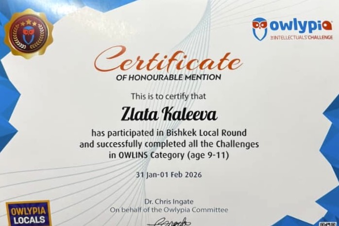 На международной олимпиаде Owlypia наши ребята продемонстрировали высокий уровень владения английским языком, аналитическое мышление и широкий кругозор. Owlypia — это межпредметная олимпиада, где школьники рассуждают, пишут эссе и анализируют сложные темы на английском языке в таких областях, как искусство и дизайн, экономика и бизнес, литература и культура, естественные науки и технологии. В числе призёров — Пластун Кирилл (8 "А"), а также ученицы 4 "А" класса Васильева Кристина и Калеева Злата.