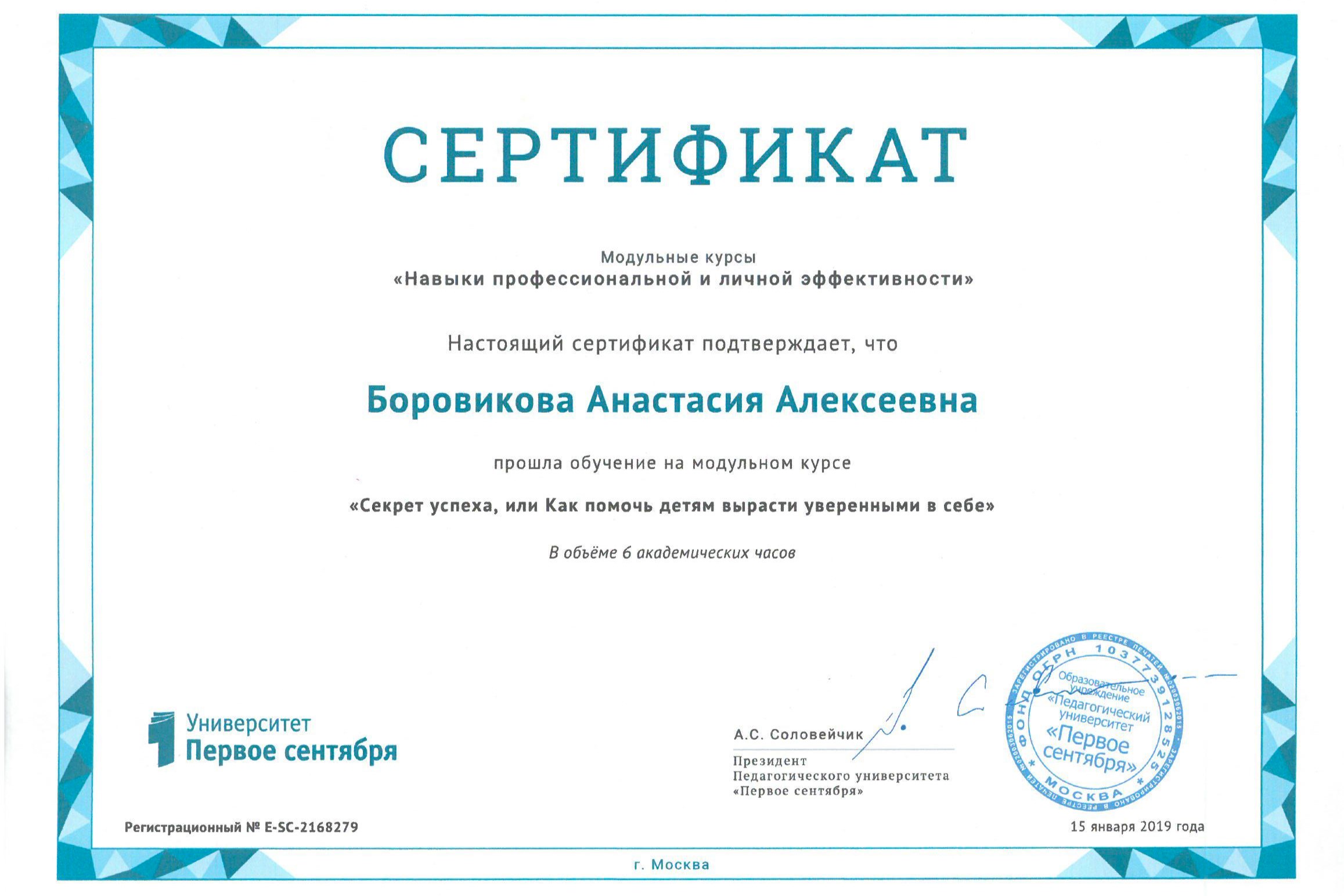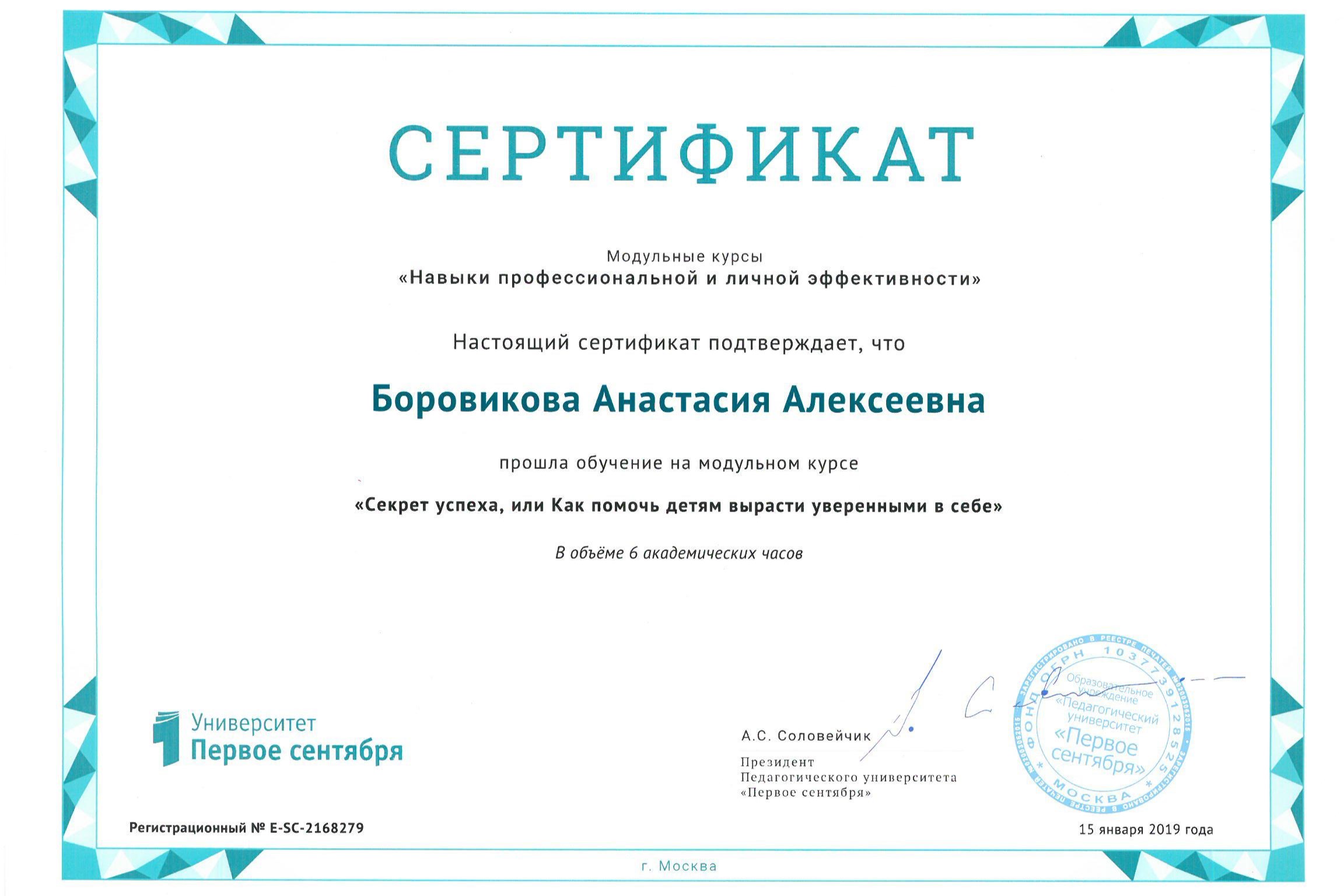 Боровикова Анастасия Алексеевна