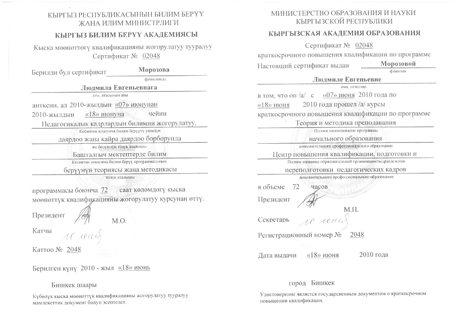 Морозова Людмила Евгеньевна